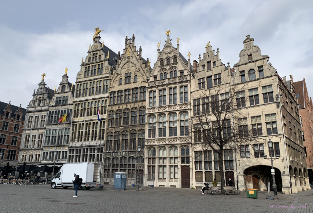 El punto neurálgico de la ciudad es la Plaza Mayor o Grote Markt (a 20 minutos de la estación caminando). Se trata de una plaza en forma triangular flanqueada por el Ayuntamiento, la Catedral de Nuestra Señora, las antiguas casas gremiales, y presidida por la imponente fuente de Brabo. El Ayuntamiento fue construido entre los años 1561 y 1564. Es de estilo renacentista con influencias tanto flamencas, como italianas.