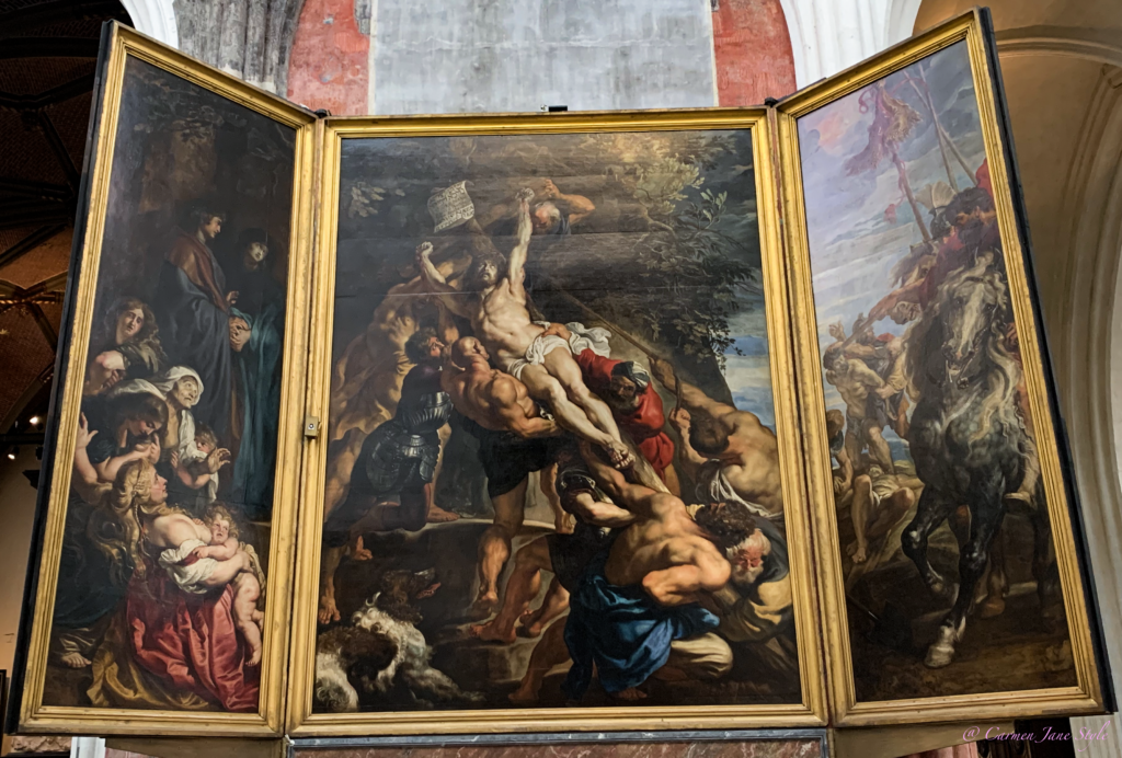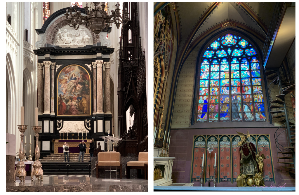 Su interior contiene 4 impresionantes obras de Pedro Pablo Rubens, pintor de fama mundial: los trípticos “Descendimiento de la Cruz” de 1612 y “La Elevación de la Cruz” de 1610, y los cuadros “Asunción de la Virgen” de 1626 presidiendo el altar mayor, y “La Resurrección de Cristo” de 1612. Las vidrieras que representan temas bíblicos son de una belleza incomparable, así como la decoración de los retablos.