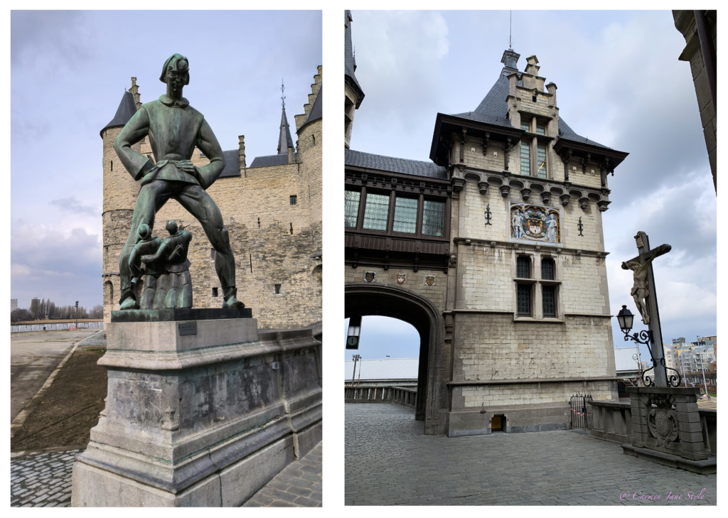 A 4 minutos de la plaza central, en pleno puerto de Amberes, a orillas del rio Escalda llegamos al Castillo de Steen, una fortaleza construida a principios de la Edad Media tras las invasiones vikingas, considerado el edificio más antiguo de la ciudad. En su día fue una importante prisión donde se realizaban crueles torturas, pero actualmente se puede visitar una pequeña parte, y la otra alberga el museo Naval. Vale la pena recorrer las muralla para apreciar las excelentes vistas del río gracias a sus miradores.