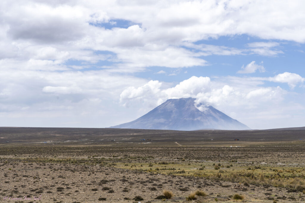 Por fin llegamos al punto más alto de la ruta de Arequipa a Chivay, el Mirador de los Volcanes de Patapampa, también conocido como el “Mirador de los Andes” a 4.910 m. sobre el nivel del mar. Aquí la falta de oxígeno se nota mucho, y el menor movimiento brusco hace que te marees. Desde este lugar se obtienen unas espléndida vistas de los imponentes volcanes Ampato, Hualca Hualca y Sabancaya cuyas cimas están casi siempre cubiertas de nieve.