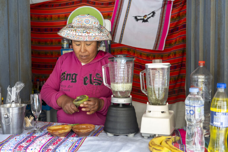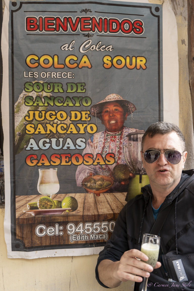 Regresamos de nuevo a Chivay, atravesando el impresionante Valle de Colca de nuevo y disfrutando de sus paisajes. Paramos a tomar un refrigerio típico de la zona llamado “Colca Sour” a base de jugo de cactus sancayo (de sabor agrio y muy utilizado por los incas como supresor del apetito y regulador intestinal). Se puede tomar sólo o con pisco (aguardiente peruano).