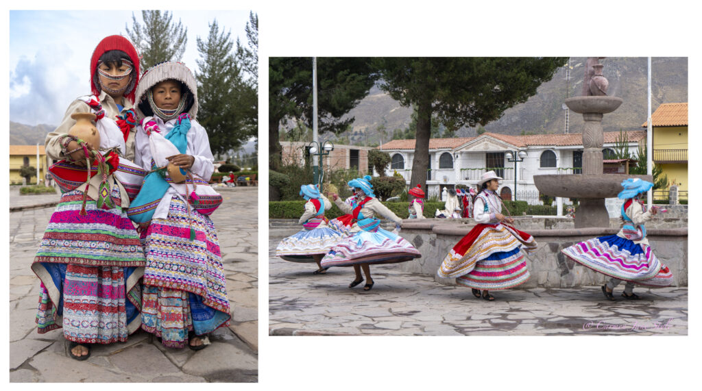 En la misma plaza pudimos contemplar el baile típico representativo del Valle del Colca, “la danza del amor”declarada Patrimonio Cultural Inmaterial de la Humanidad en el año 2015. Cuenta la historia de un joven enamorado de una mujer que pertenecía a otra comunidad, y al no poder estar con ella aprovecha las fiestas del pueblo para vestirse de mujer, y así acercarse a ella. Destaca la singular vestimenta a base de faltas largas con trabajados bordados y encajes en tejidos de lana muy coloridos.
