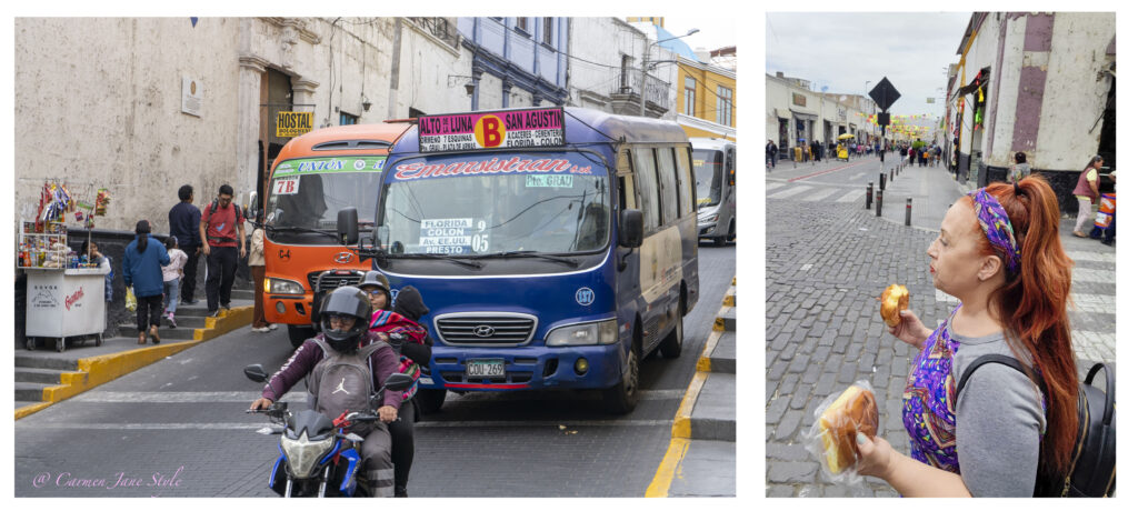 Llegamos a Arequipa por la mañana, muy temprano después de un largo viaje en autobús durante toda la noche desde Ica (10 horas). Acudimos directamente a nuestro hotel, San Agustin de Arequipa, frente al Monasterio de Santa Catalina ubicado en un edificio antiguo restaurado del SVIII.