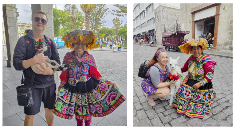 Arequipa es una ciudad muy animada, tanto por el día como por la noche. No dejes de visitar una picantería y probar el rocoto relleno. A cada paso te encontrarás mujeres vestidas con su traje tradicional y pequeñas alpacas o llamas para hacerte fotografías a cambio de una propina.