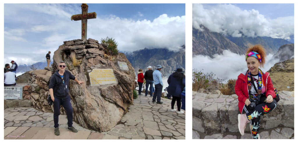 Nos dirigimos al famoso Cañón del Colca considerado uno de los cañones mas profundos del mundo con una caída de 4.160 m. Subimos hasta el Mirador de la Cruz del Cóndor para ver si con suerte podemos apreciar el vuelo de esta grandiosa ave andina. Desgraciadamente las nubes cubrían las montañas y no pudimos avistar ninguno; pero el lugar resultó ser fascinante.