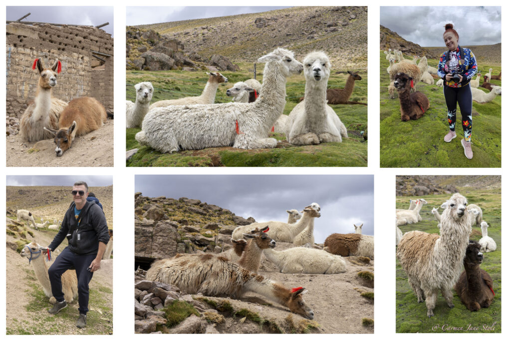 En el camino paramos a contemplar un rebaño de llamas y alpacas. Estos animales, a excepción de las vicuñas, son domésticos, y una importante fuente en la economía rural peruana, por la calidad de su lana y de su carne.
