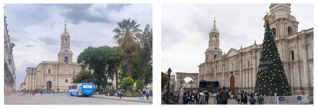 El centro histórico de Arequipa está considerado Patrimonio de la Humanidad por la Unesco. En la imponente Plaza de Armas se encuentra la majestuosa catedral de Arequipa construida en el S XVII, con piedra volcánica y ladrillo en estilo gótico y neorrenacentista.