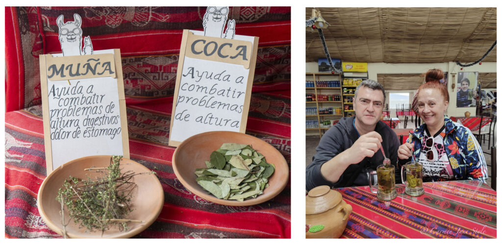 Vamos ascendiendo y podemos apreciar el paisaje volcánico con capas geológicas propio de la zona. Realizamos una parada para tomar un té de coca o de muña, ya que el mal de altura se va haciendo patente por la falta de oxígeno. Estamos en la zona del altiplano, en una de las mesetas mas elevadas de la tierra, a 4000 m. sobre el nivel del mar.