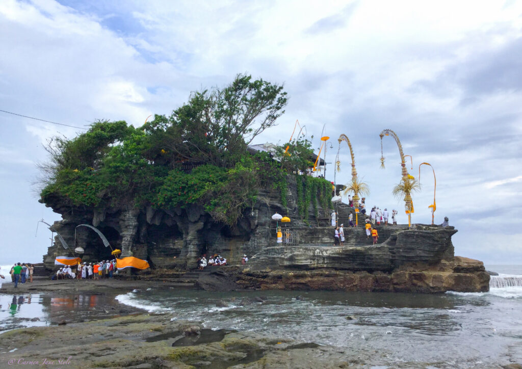 Se encuentra en un emplazamiento inigualable sobre un montículo rocoso en medio del mar, en la costa sureste de la isla. El templo fue construido por un sacerdote durante el siglo XVI, y está dedicado a los espíritus guardianes del mar y al dios Tanah (dios del mar). Cuenta la leyenda que el lugar está protegido por las peligrosas serpientes marinas que habitan bajo la superficie.