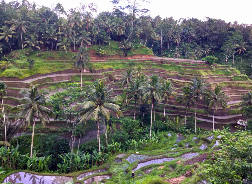 Bali es una isla muy fértil. Su clima cálido, sus tierras volcánicas y la abundancia de agua, han permitido que el arroz sea uno de los mejores cultivos, que tiñen de verde esmeralda el paisaje.