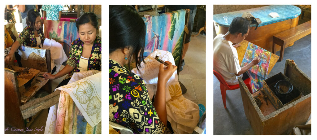 Destacan los talleres de realización de tejidos confeccionados con telares artesanales y la increíble técnica del Batik. El proceso se realiza de manera manual aplicando capas de cera virgen sobre un tejido, y coloreando las zonas libres consiguiendo una variedad de matices muy bonitos y siempre diferentes. Desde el 2002 la Unesco proclamó al Batik Indonesio Patrimonio Inmaterial de la Humanidad.
