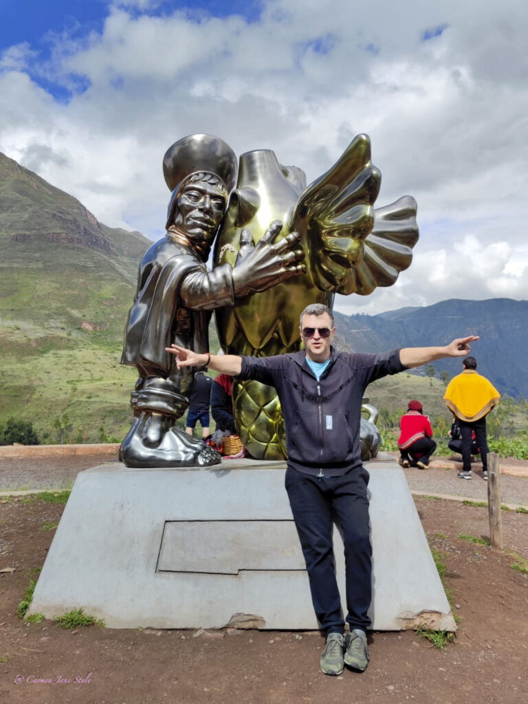 Al día siguiente realizamos el tour del Valle Sagrado de los Incas. A la entrada del valle nos encontramos con una réplica de la estatua contemporánea “ El Abrazo Imposible” que representar el abrazo que todos los peruanos quisieron darse en tiempos de distanciamiento social por la pandemia del Covid en 2021.
