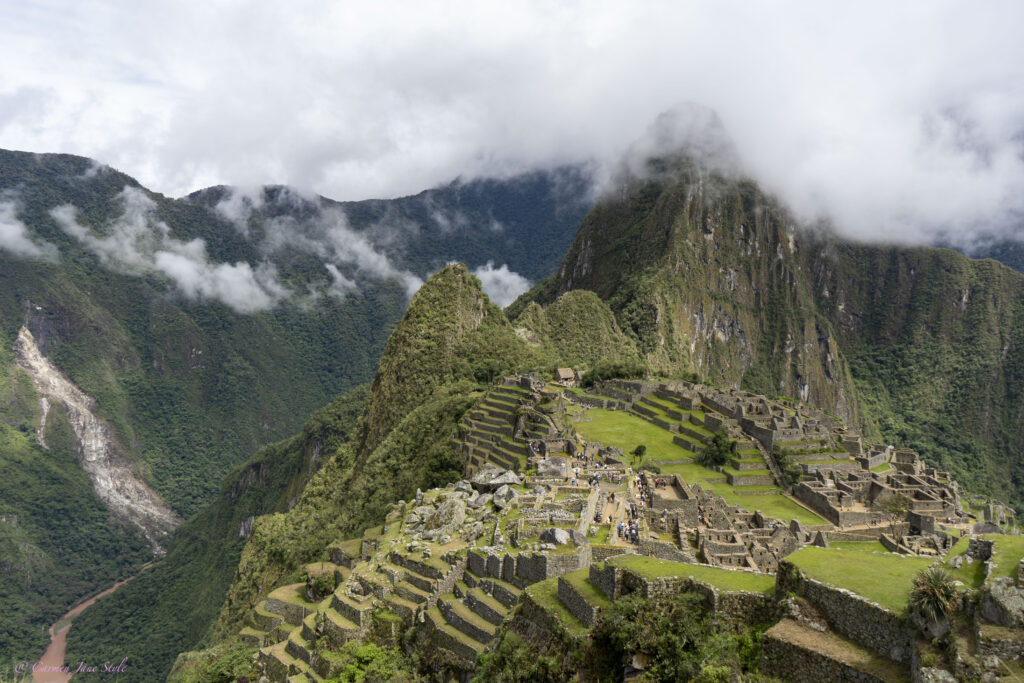 Al día siguiente, muy temprano, a las 6 de la mañana, partimos hacia el autobús que nos llevará hasta el ansiado Santuario de Machu Picchu. Debes comprar las entradas con mucha antelación, ya que tiene un flujo de visitantes limitado. Nosotros lo teníamos todo incluido en el paquete, pero si no tienes entrada previa te puedes llevar un gran disgusto, porque el mismo día en taquilla no suele haber entradas disponibles. El trayecto en autobús dura unos 30 minutos serpenteando literalmente por la carretera de Hiram Bingham hasta acceder al gran complejo entre montañas y niebla.