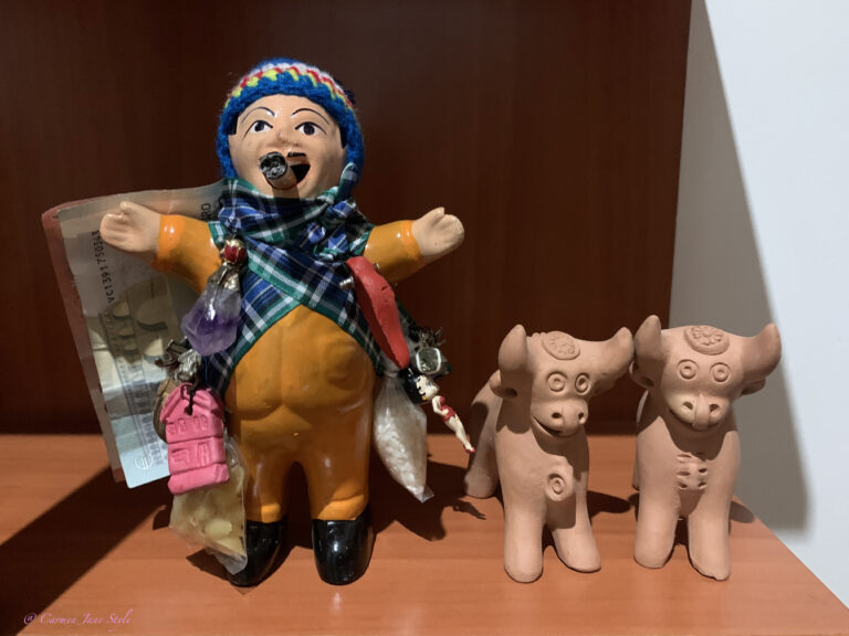 En el museo también se cuenta la historia del dios pre incaico de la abundancia  Ekeko”, y de los famosos “Toritos de Pukará” llenos de misticismo y arte a base de arcilla decorada. Su nacimiento se remonta a la llegada de los españoles a América, cuando los toros comenzaron a formar parte de las fiestas tradicionales de la zona, y se decoraban con infinidad de colores. Hoy en día son un símbolo de protección del hogar, y se colocan en el tejado o en la entrada de las casas.  No pude resistir la tentación de comprar dos toritos para pintarlos y decorarlos, así como un Ekeko que ya forman parte de nuestra familia de recuerdos.