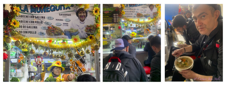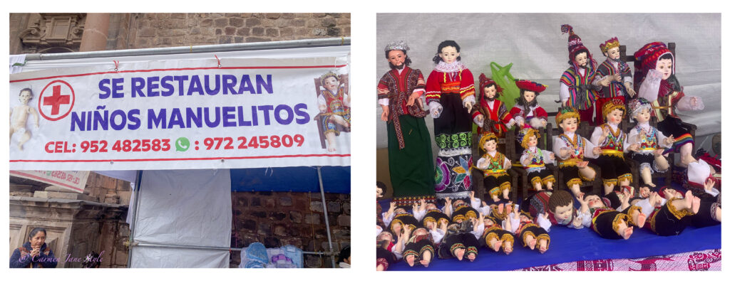 Como eran fiestas navideñas encontramos un mercado de venta y restauración de Manuelitos. El niño Manuelito es el equivalente a nuestro niño Jesús. Tradicionalmente los visten con vivos colores y bordados, y sus cabellos son naturales.