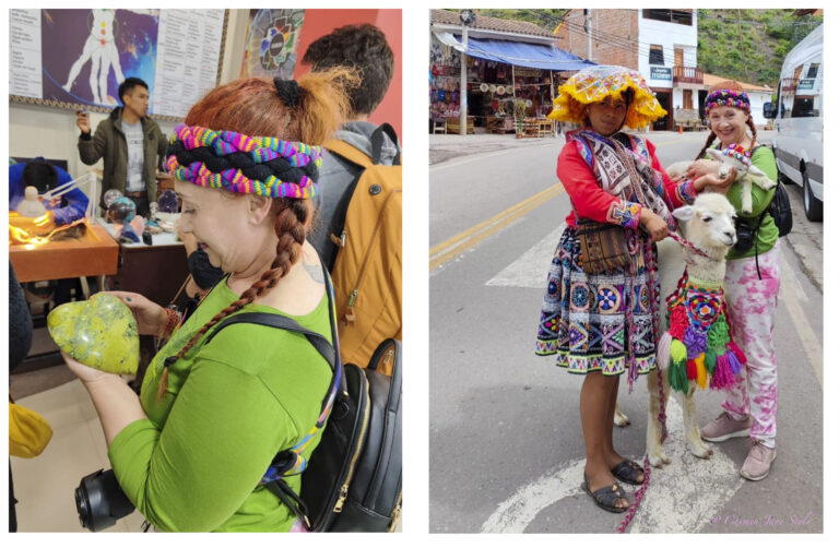 Durante el recorrido, paramos en una tienda de artesanía de piedras para conocer sus propiedades. La mas conocida en la zona es la serpentina, un mineral de color verdoso que se puede ver en la zona del Valle y de Machu Picchu, y que es muy apreciada porque se asocia con la conexión de la tierra en la Naturaleza. No pude resistir la tentación de comprar un colgante de cruz andina con la piedra ensamblada…bueno más bien me la regalo Alberto!!!