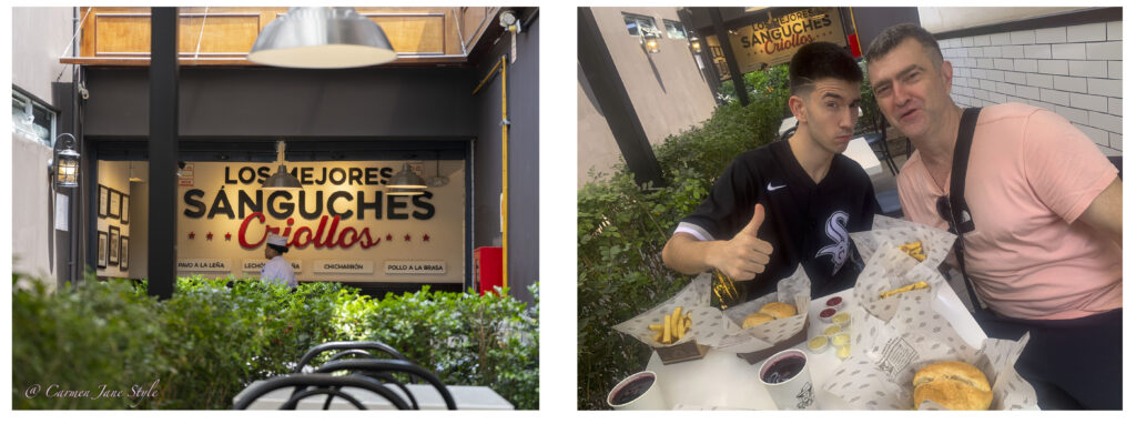 Pero, sin lugar a dudas, una de la mejores cosas para hacer en Lima, es disfrutar de su rica gastronomía y su ambiente nocturno. Hay infinidad de restaurantes con una variada oferta para todas los presupuestos. Pero una de las cosas que mas nos sorprendieron fueron los deliciosos sanguches (una especie de bocadillos de pan redondo) rellenos de chicharrón, res o pollo a la brasa, acompañado de papas con diversas salsas picantes. Si además los tomas con jugo de chicha morada (a base de maíz) o de maracuyá te sorprenderás.