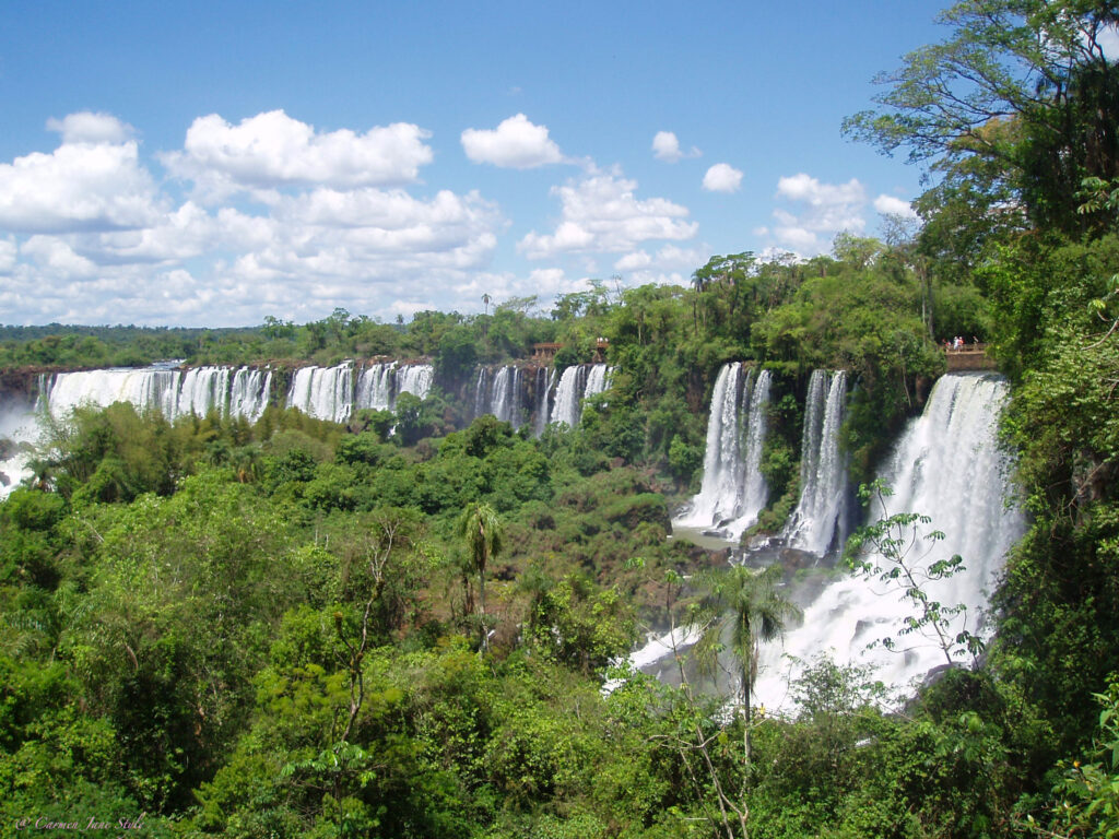 Estaba visitando Buenos Aires, y decidí tomarme unos días para conocer las famosas Cataratas de Iguazú. Ya que Argentina es un país muy extenso, las cataratas se encuentran a 1300 km de la capital, aunque el vuelo solo tiene una duración de casi 2 horas. Me alojé en un coqueto hotel en Puerto de Iguazú a 18 km del parque, al que se puede llegar en autobús público o transporte privado contratado previamente. Iguazú significa “Aguas grandes” en guaraní, el idioma de los habitantes nativos. Las Cataratas del Iguazú están consideradas Patrimonio de la Humanidad por la UNESCO, y una de las siete maravillas naturales del mundo.