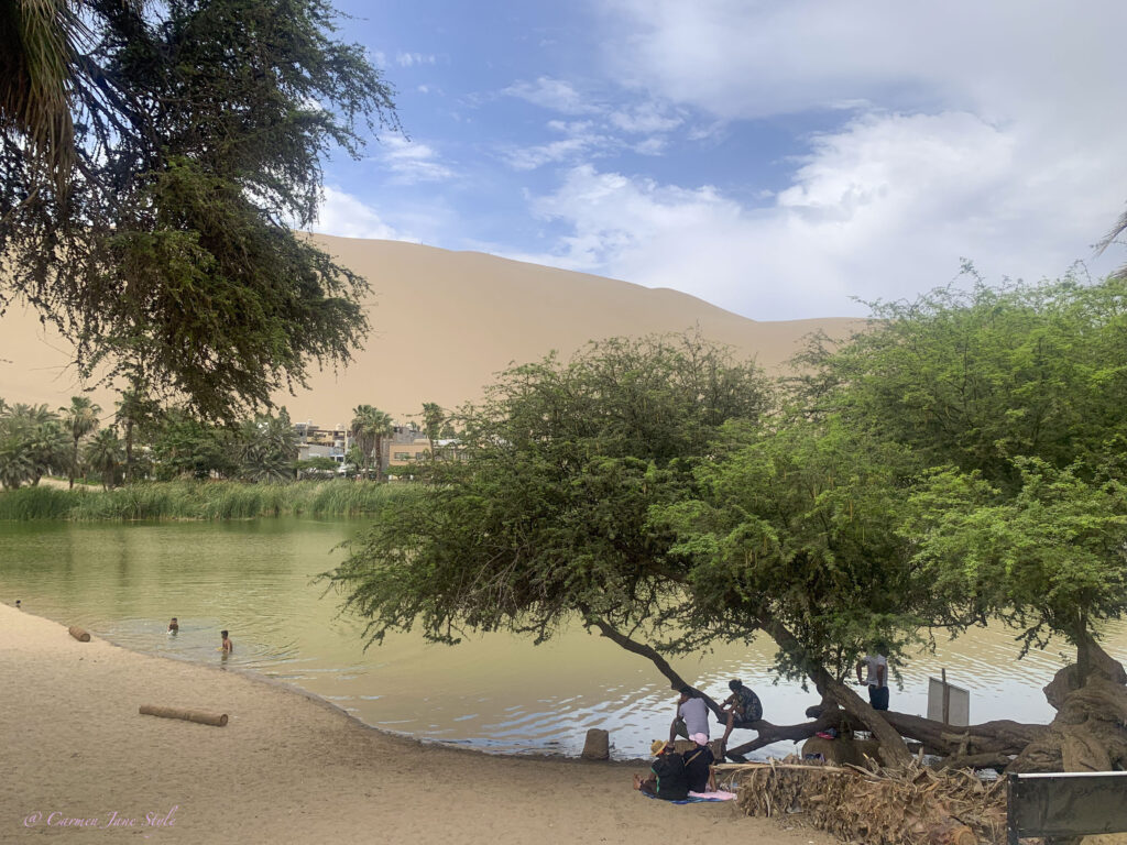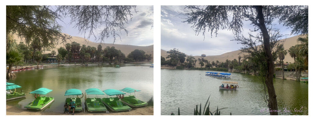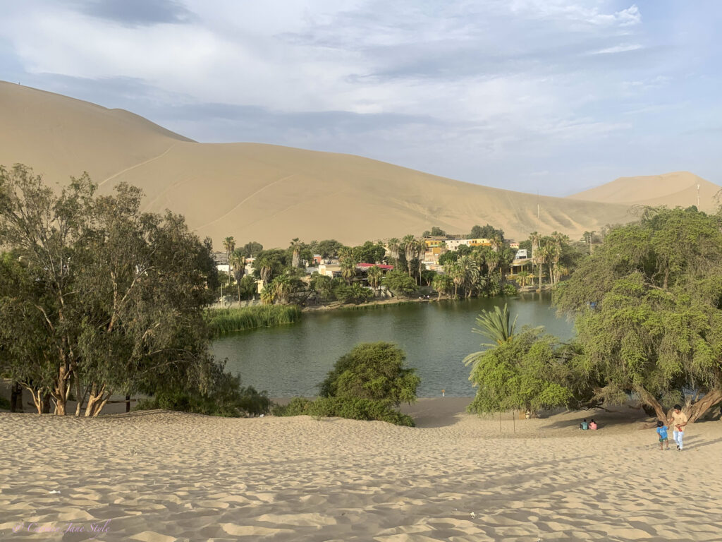 Huacachina es un pequeño pueblo ubicado en el desierto de Ica. Es un oasis natural que se formó gracias a una corriente de agua subterránea, que generó el crecimiento de plantas y árboles en medio del desierto.