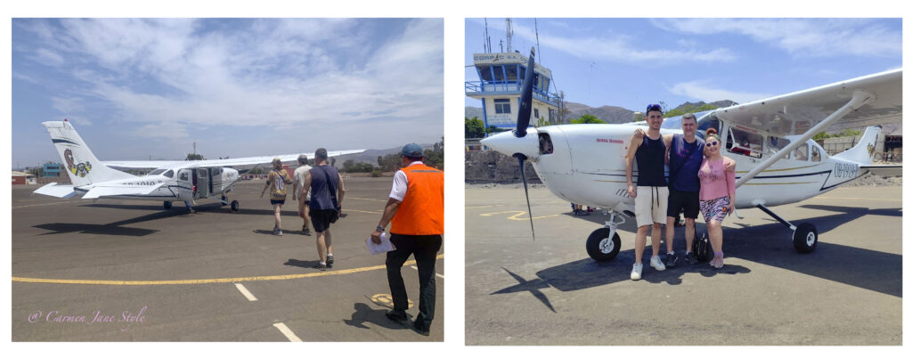 Madrugamos para ir al aeródromo Maria Reiche y hacer uno de nuestros sueños realidad; sobrevolar las famosas Lineas de Nazca. No olvides llevar el pasaporte, porque te lo pedirán en el embarque.
