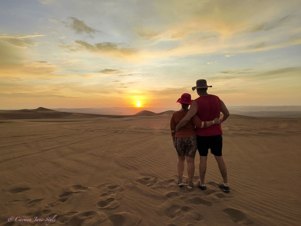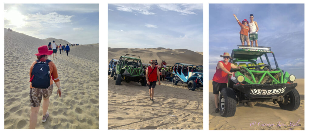 Después de dar un amplio paseo por la laguna y merendar, optamos por realizar un paseo en buggy subiendo y bajando por las altas y onduladas dunas del desierto que rodea el pueblo como en una montaña rusa. Probamos a surfear descendiendo en tabla por las dunas a gran velocidad, y resultó ser una experiencia intrépida y divertidísima, que repetiríamos mil veces más.