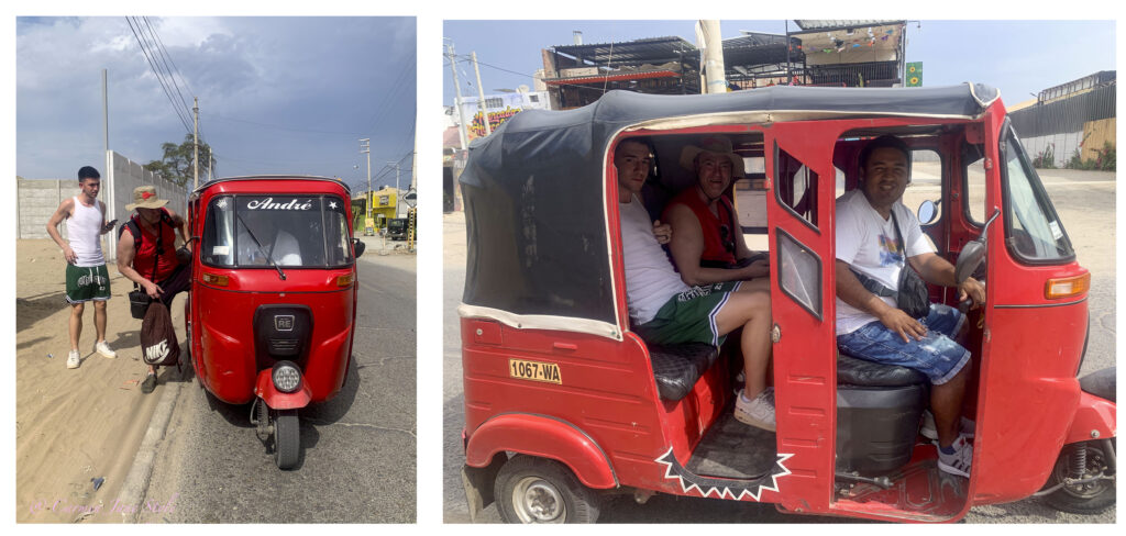 Probamos a desplazarnos en moto taxi. Este transporte es muy típico en todo Perú porque es muy práctico y económico. Además cada una de estas motos tiene una decoración diferente y personalizada super divertida.