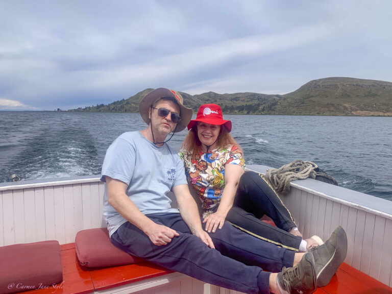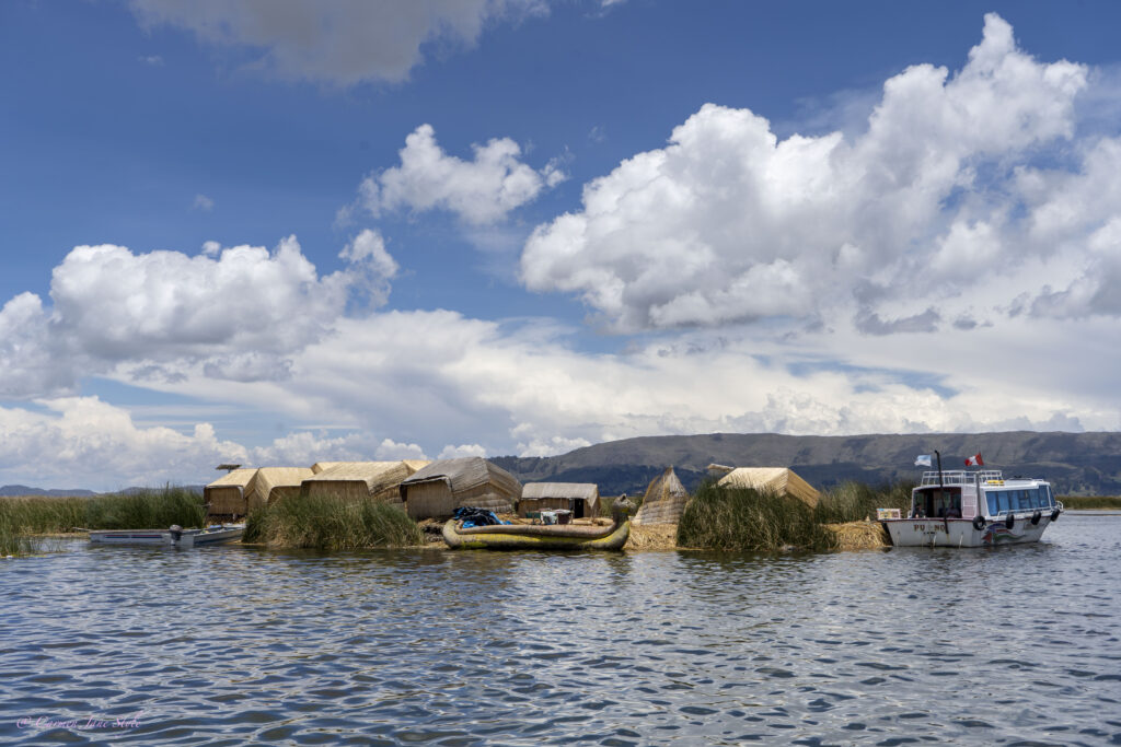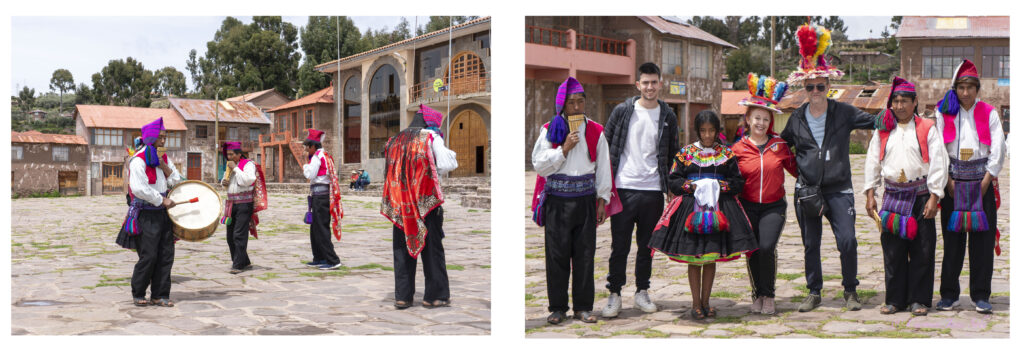 Realizamos la primera parada en las Islas Flotantes de los Uros, un grupo de más de 100 islas artificiales construidas por el hombre, y realizadas con caña de totora. Allí pudimos interactuar con sus habitantes, comprar artesanías típicas y disfrutar de un paseo en una peculiar barca artesana.