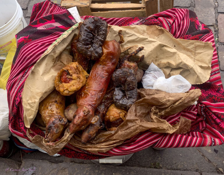 Aprovechamos la oportunidad de probar la carne de llama que resultó tener un sabor demasiado fuerte, así como el cuí asado (conejillo de indias) que aunque es un manjar en Perú, tampoco nos gustó, posiblemente porque no dejábamos de pensar en los animalillos, que alguna vez hemos tenido en casa como mascotas.