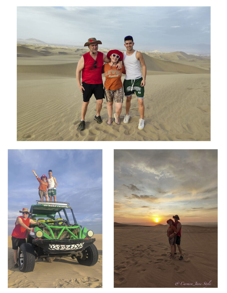 La siguiente parada fue el desierto de Ica, a una hora y media de distancia de Paracas, para contemplar el impresionante Oasis de Huachachina, donde además, hicimos una excursión en buggy recorriendo las dunas y contemplando la maravillosa puesta de sol.