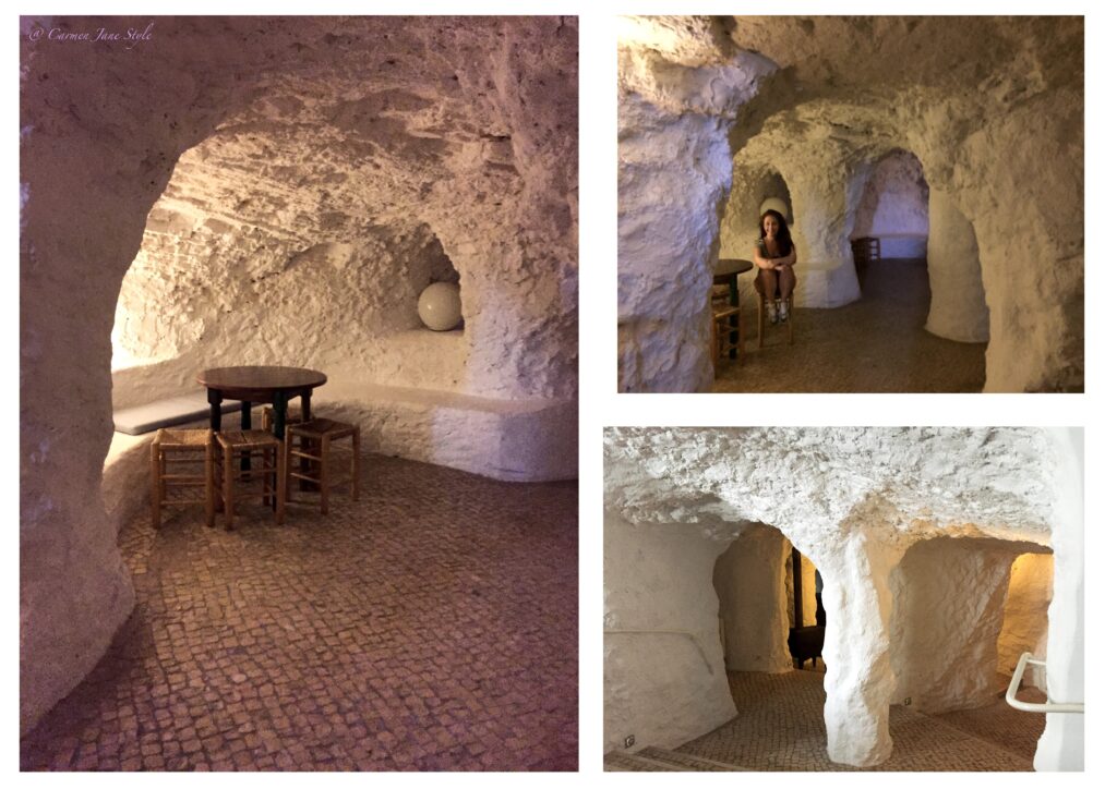 En la misma ladera de la sierra de los molinos se encuentran, las casas cueva excavadas en la roca. Son construcciones típicas donde vivían antiguamente los vecinos. Algunas de estas cuevas también se utilizaban como almacén del grano que posteriormente se molía en los molinos de viento. Generalmente, los animales de carga también vivían bajo el mismo techo.